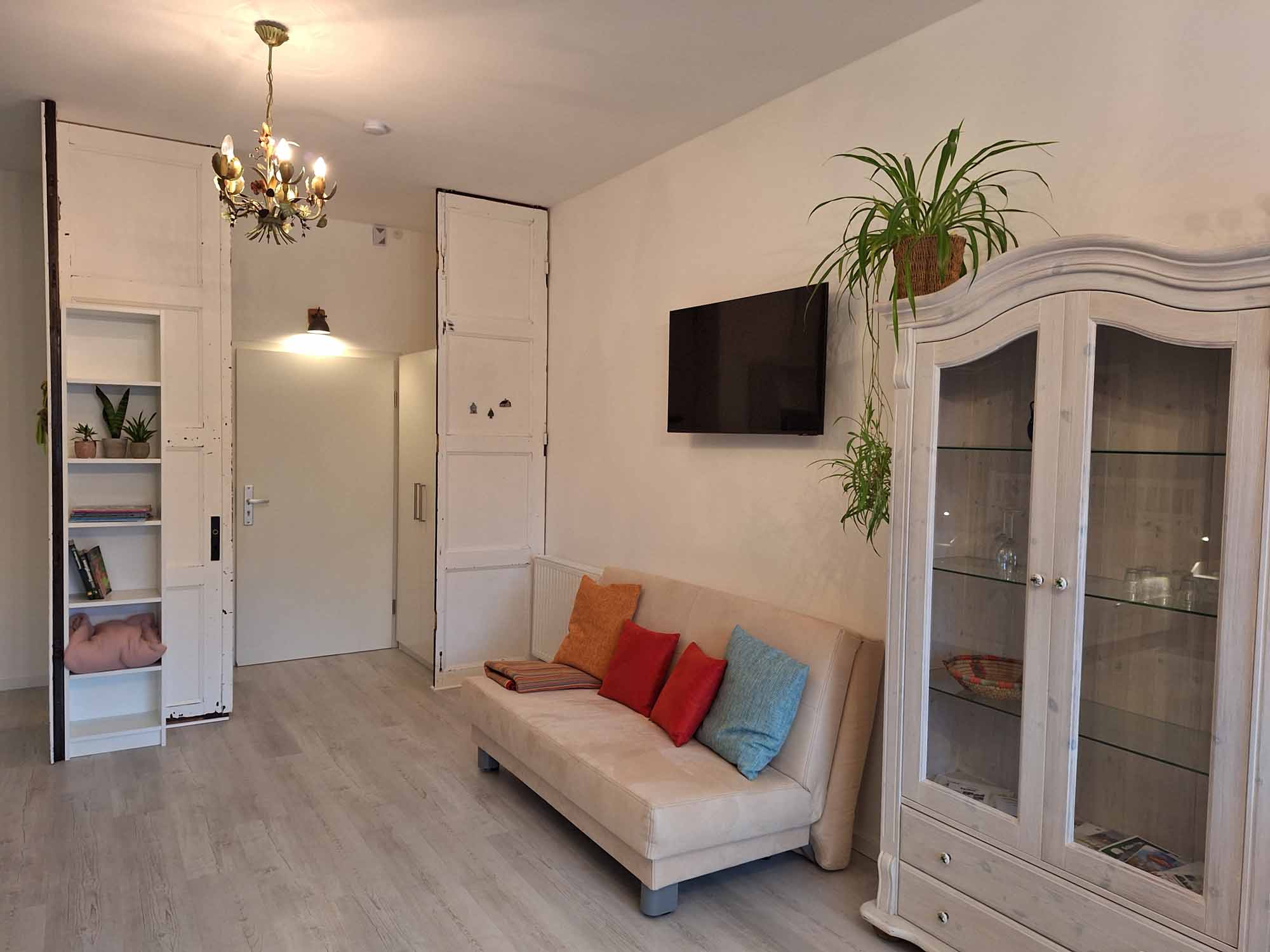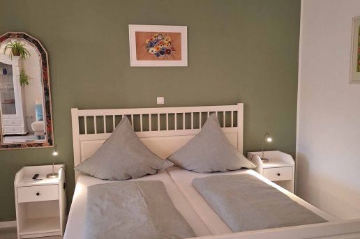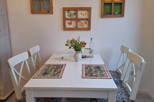 Diese Ferienwohnung mit 1 Zimmer für 2-4 Personen ist dem Gartenzugang am nächsten. Hier fühlen Sie sich auch an trüben Tagen wie bei Sonnenschein im Garten.